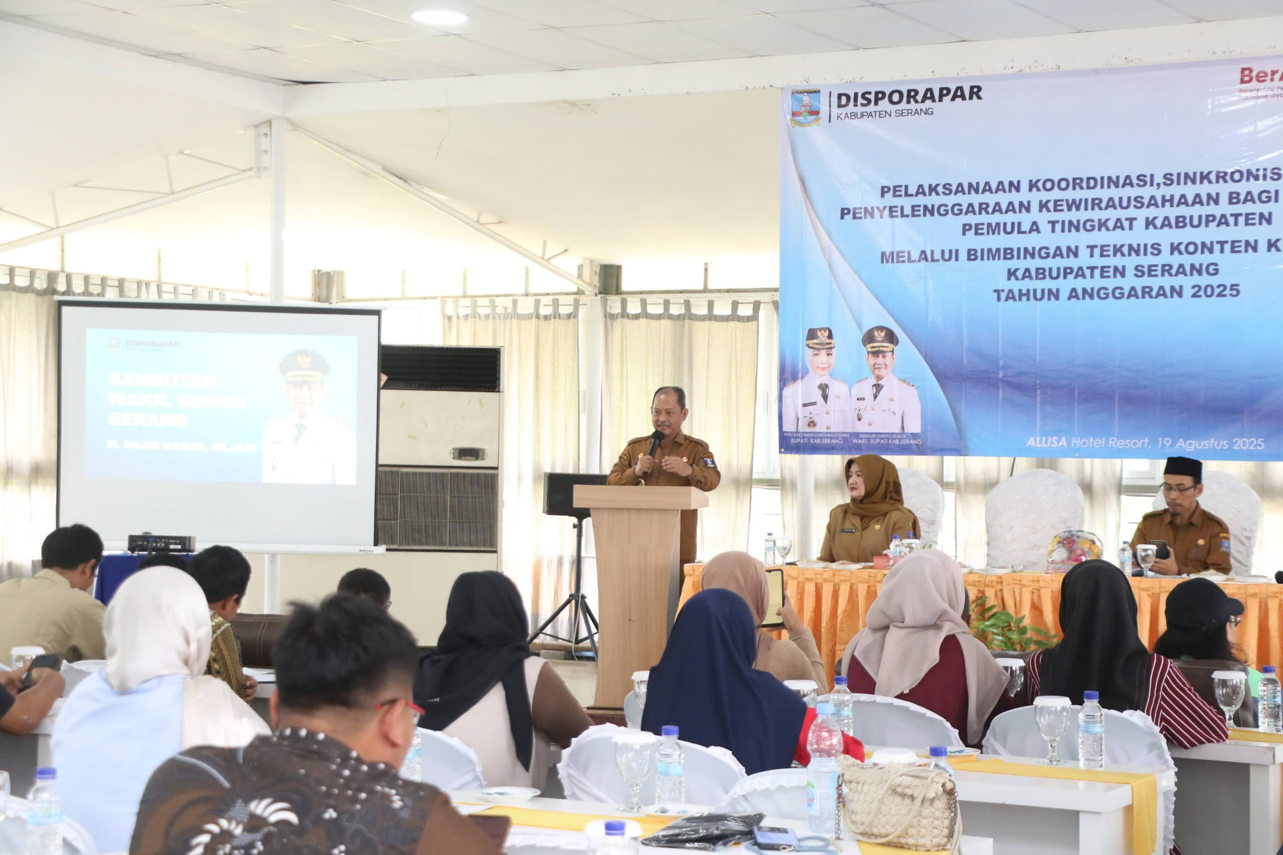 Hal ini disampaikan Najib Hamas usai membuka Pelaksanaan Koordinasi, Sinkronisasi dan Penyelenggaraan Kewirausahaan bagi Wirausaha Pemula tingkat Kabupaten Serang melalui Bimbingan Teknis (Bimtek) Konten Kreator Kabupaten Serang Tahun Anggaran 2025.