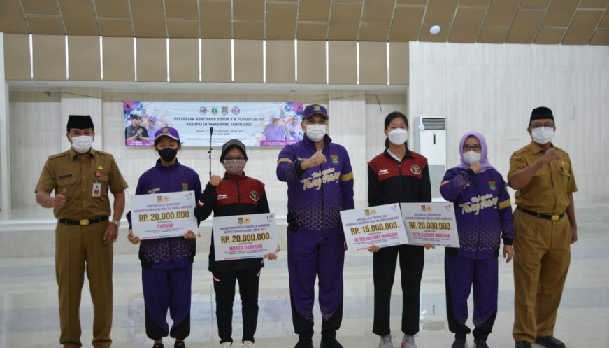 “Pemberian kadeudeuh dalam rangka memberikan semangat dan dorongan agar atlet terus bisa berkembang di masa yang akan datang. Karena menjadi atlet bukan hal yang mudah, harus konsisten dan terus mengembangkan kemampuan diri,” papar Bupati saat melepas atlet Pekan Olahraga Pelajar Daerah (Popda) X dan Pekan Paralimpic Pelajar Daerah (Paperda) VII tahun 2022, di GSG Pusat Pemerintahan Kabupaten (Puspemkab) Tangerang, Senin (30/5/2022).