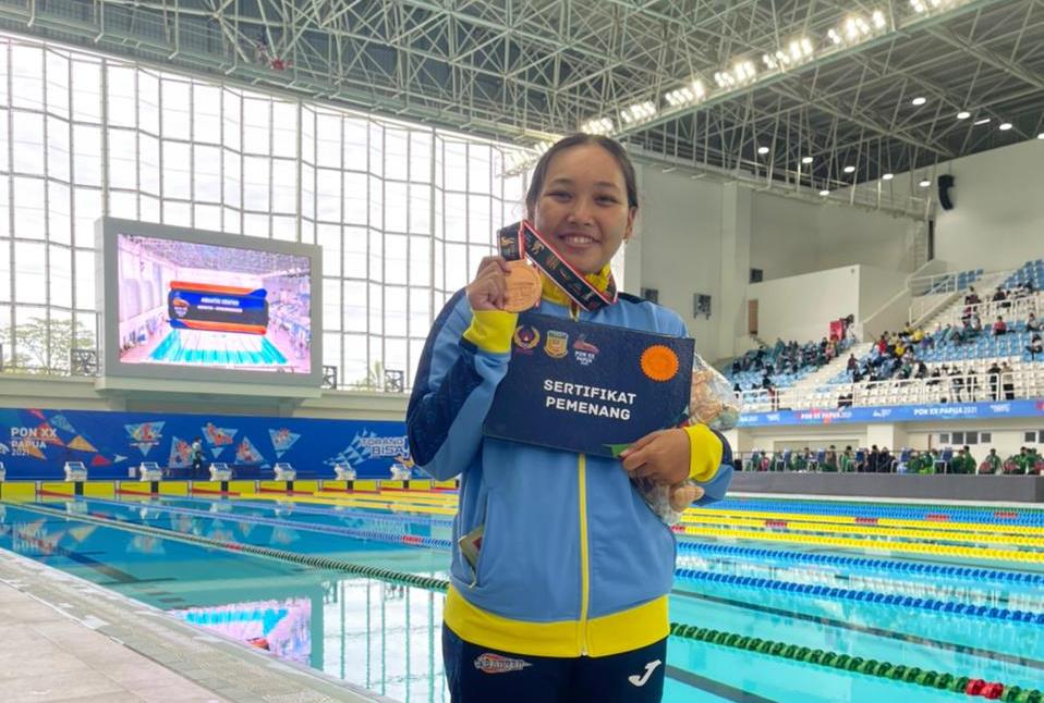 Berlaga di Kolam Aquatik Stadion Lucas Enenbe di Kabupaten Jayapura, Kamis (7/10/2021), Amartha Latifa berhasil meraih medali perunggu dari nomor surface 800 meter dengan catatan waktu delapan menit 01.23 detik.