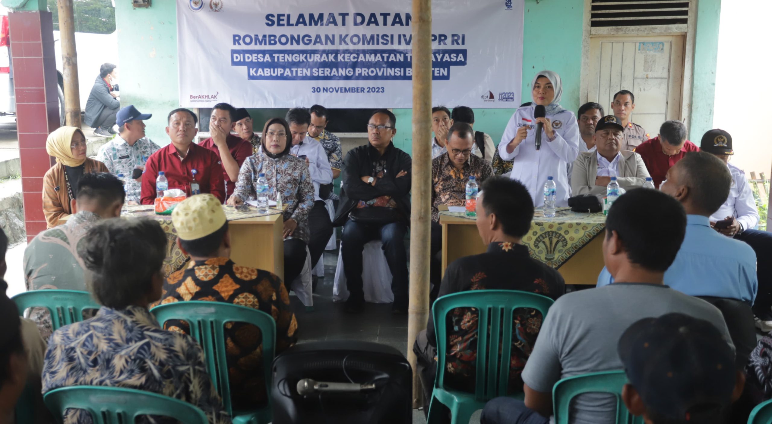SERANG – Komisi IV DPR RI melakukan kunjungan kerja ke Desa Tengkurang, Kecamatan Tirtayasa, Kabupaten Serang, Kamis (30/11/2023). Dalam kunjungan tersebut, Bupati Serang Ratu Tatu Chasanah mendorong sinergi dan optimalisasi program pemerintah pusat dan daerah dalam mengembangkan produksi perikanan di Kabupaten Serang.