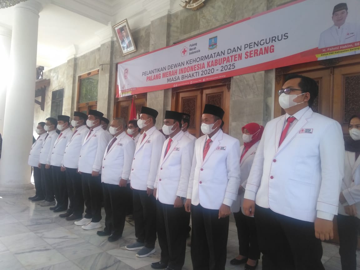 SERANG – Ketua DPD Golkar Kabupaten Serang Fahmi Hakim dilantik untuk kedua kalinya menjadi Ketua Palang Merah Indonesia (PMI) Kabupaten Serang. Pelantikan dilakukan Ketua PMI Provinsi Banten Ratu Tatu Chasanah di Pendopo Bupati Serang, Jumat (9/4/2021) siang.