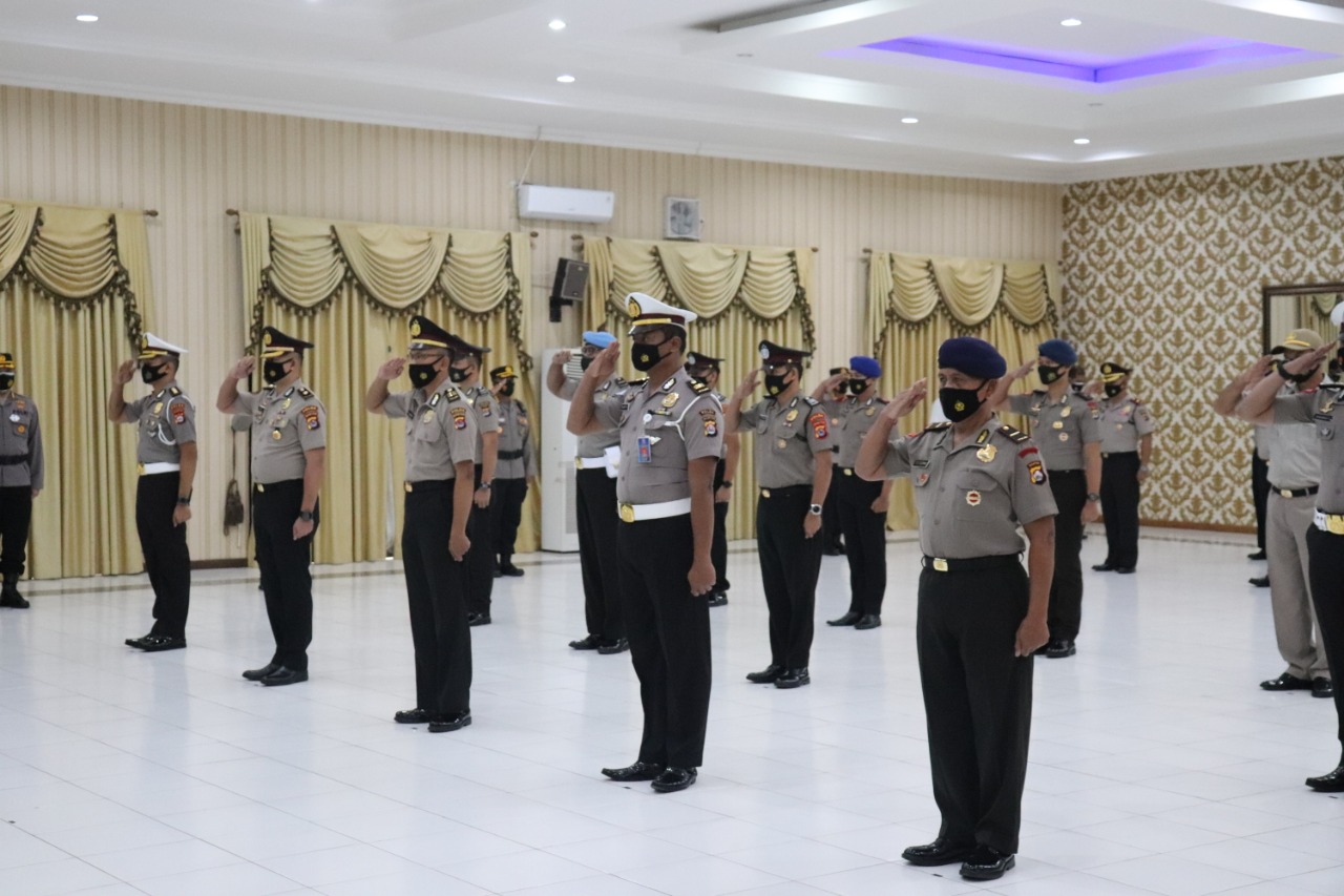 SERANG – Kapolda Banten pimpin langsung Upacara Laporan Kenaikan Pangkat Personel Polri Polda Banten Periode 1 Januari 2021 dan PNS Polda Banten Periode 1 Oktober 2020 di hadiri oleh Wakapolda Banten, Irwasda Polda Banten, dan para PJU Polda Banten, serta perwakilan personil yang naik pangkat bertempat di Aula Serbaguna Mapolda Banten. Senin (4/1/2021).