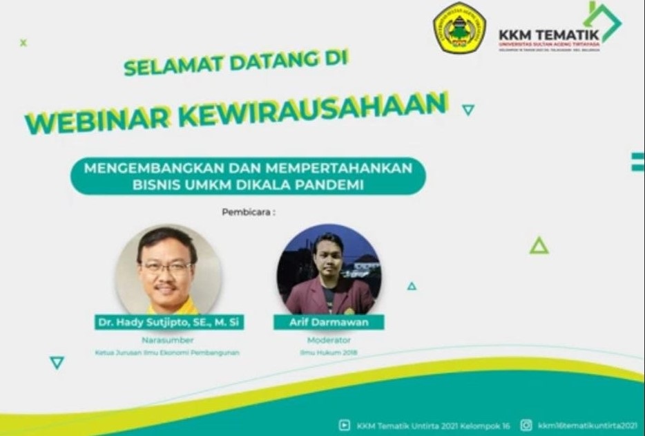 SERANG – Melakukan KKM di Desa Talagasari Kecamatan Balaraja, Kabupaten Tangerang mahasiswa Untirta mengadakan webinar kewirausahaan bagi UMKM dengan mengangkat tema “Mengembangkan dan Mempertahankan Bisnis UMKM Dikala Pandemi”.