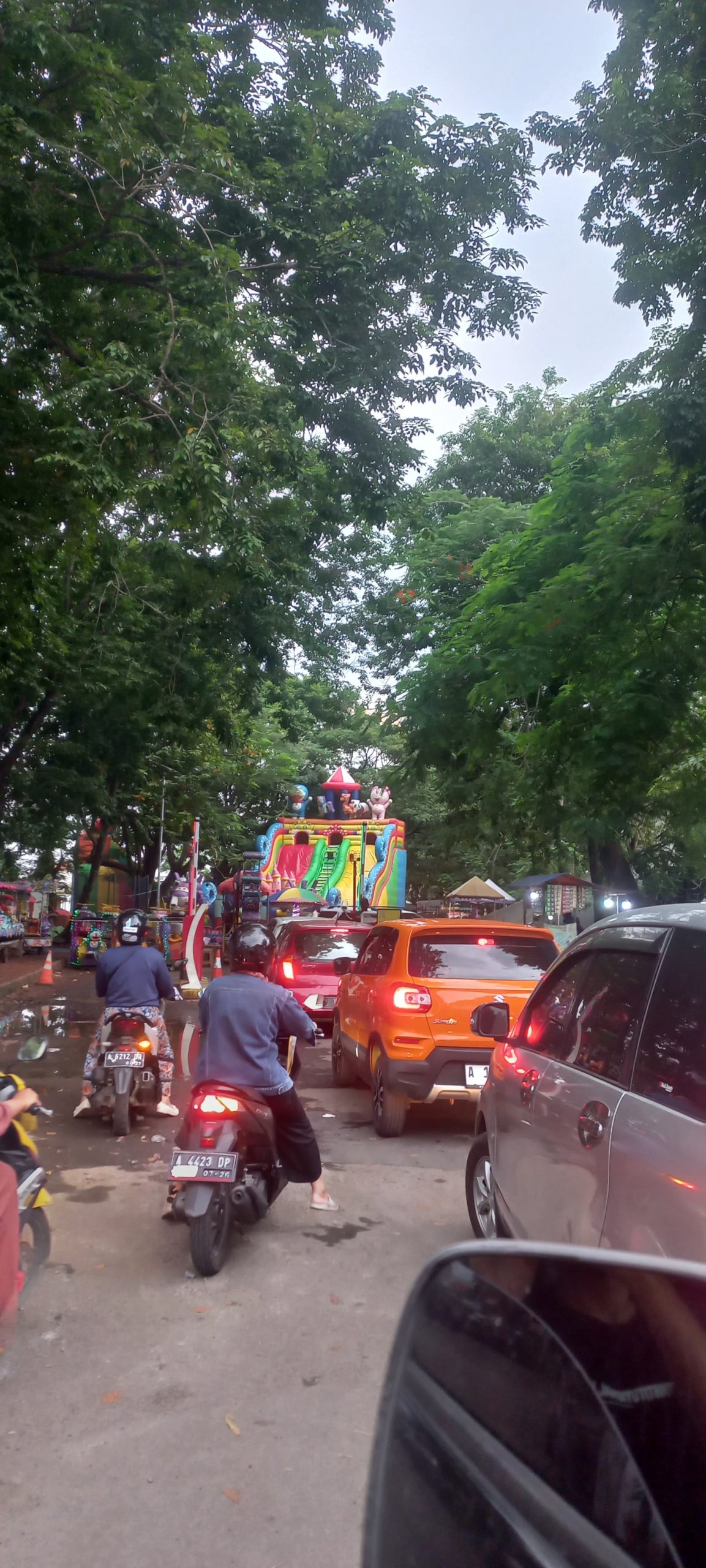 Salah satu warga, Yongki mengaku kesal. “Ini maksudnya bagaimana sih. Ngak jelas banget ada mainan balon besar pas gate masuk. Kendaraam saya jadi susah lewat,” keluhnya.