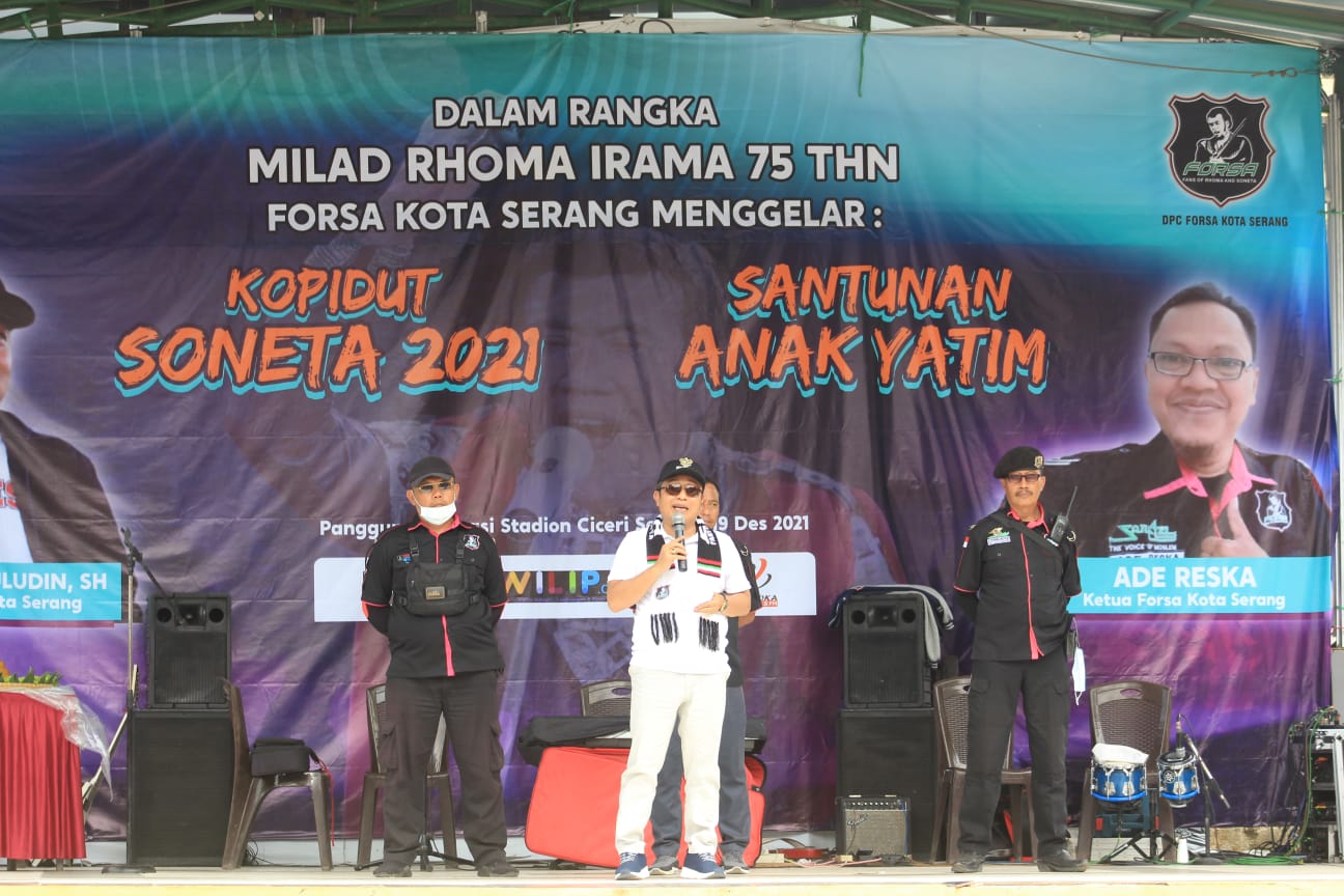 Ketua DPC Forsa Kota Serang, Reska meyampaikan, di Milad Rhoma Irama ke-75 tahun, panitia mengadakan dua acara. Yang pertama Kopidut Soneta dan kedua santunan anak yatim.