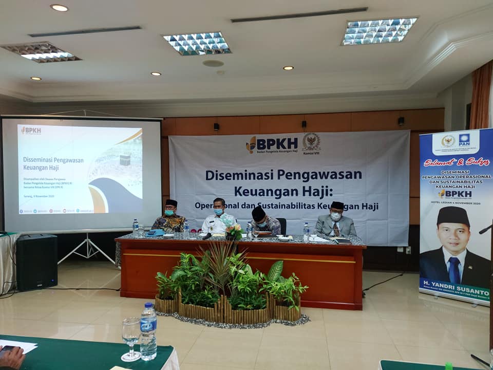 SERANG – Walikota Serang Syafrudin menghadiri acara sosialisasi desiminasi pengawasan keuangan haji yang dilaksanakan oleh Badan Pengelolaan Keuangan Haji (BPKH) RI, bersama ketua Komisi VIII DPR RI fraksi PAN Yandri Susanto disalah satu hotel di Kota Serang.