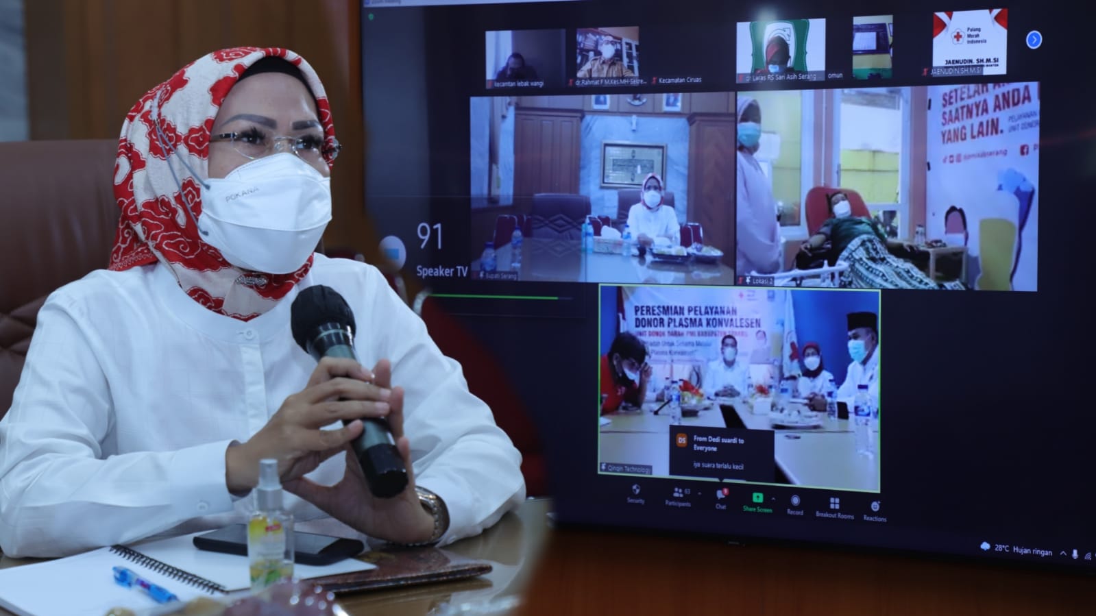 SERANG – Unit Donor Darah (UDD) Palang Merah Indonesia (PMI) Kabupaten Serang meluncurkan pelayanan donor plasma konvalesen secara virtual, Selasa (10/8/2021). Peluncuran dilakukan Ketua PMI Provinsi Banten sekaligus Bupati Serang Ratu Tatu Chasanah.