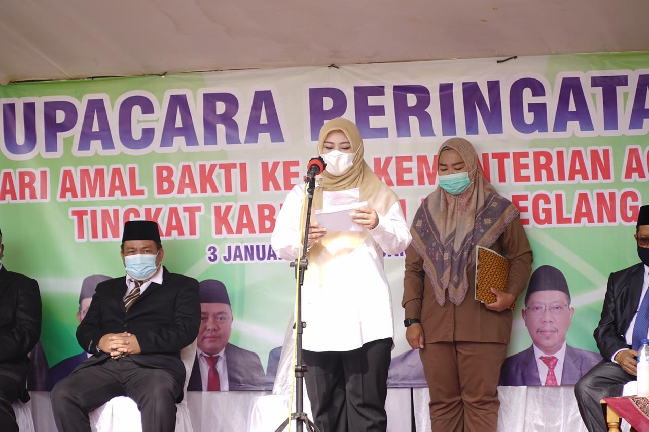 PANDEGLANG – Bupati Pandeglang Irna Sikapi Persoalan Keumatan Dengan Akal Sehat dalam Peringatan Hari Amal Bakti tingkat Kabupaten Pandeglang di Halaman Kantor Kementerian Agama Kabupaten Pandeglang, Selasa (5/1/2021).