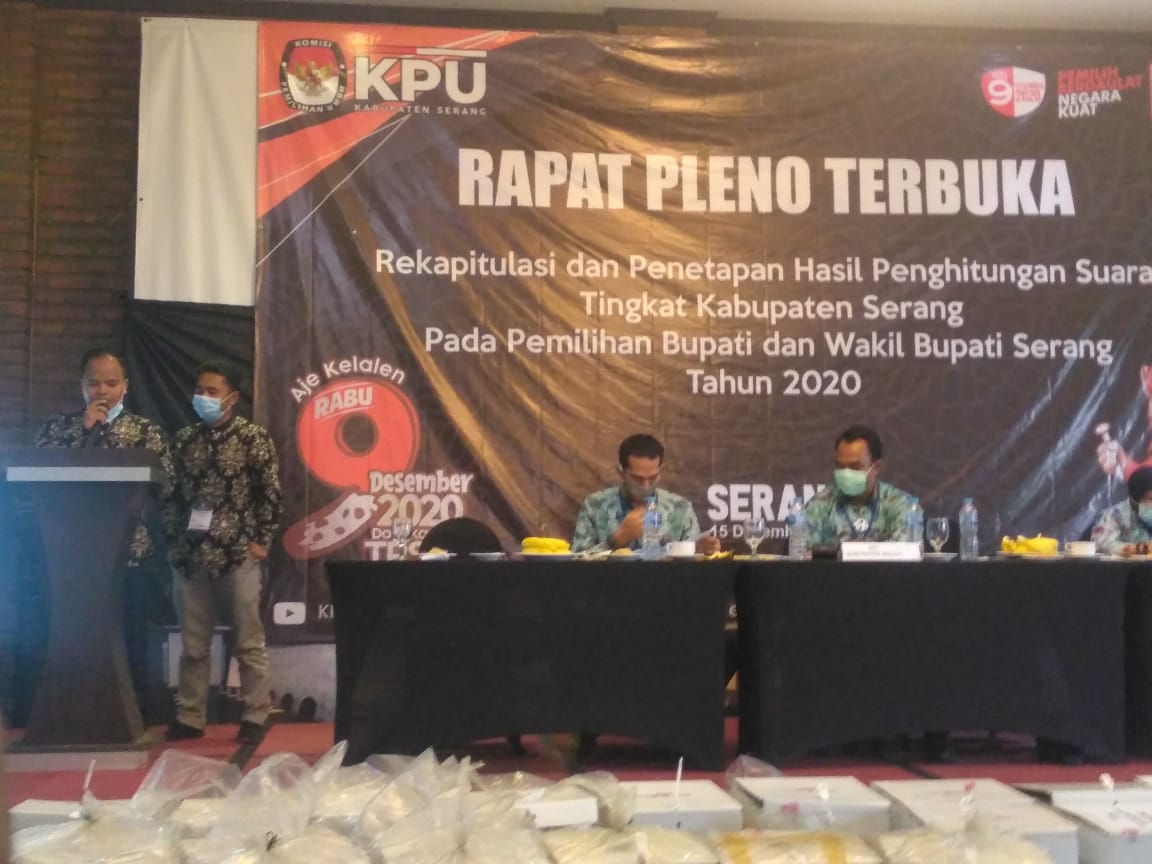 Terkait Pleno Terbuka Rekapitulasi dan Penetapan Hasil Penghitungan suara tingkat Kabupaten Serang, pihaknya menerangkan, penetapan pasangan calon (paslon) yang menang di pesta demokrasi ini menunggu lima hari sampai tidak ada registrasi di MK.