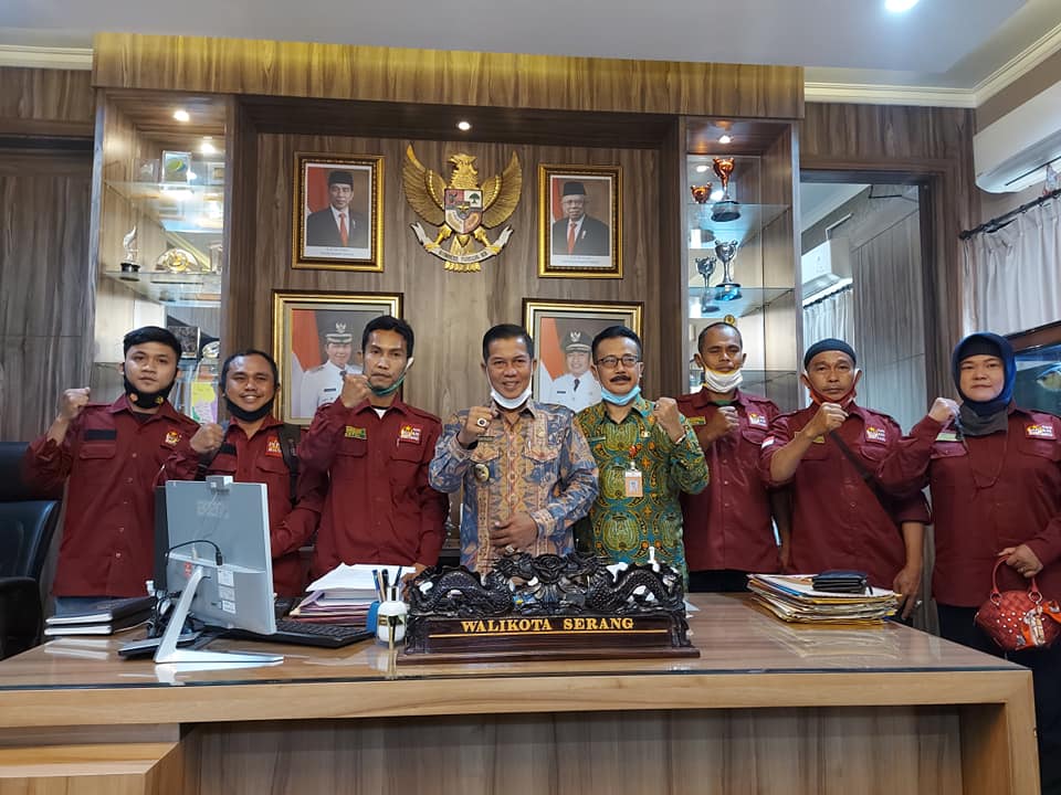 SERANG – Walikota Serang Syafrudin ditemani kepala Kesbangpol Kota Serang Alpedi menerima audiensi dari Jajaran Pemuda Bulan Bintang DPW Provinsi Banten di ruang kerjanya, Kamis (12/11/2020).